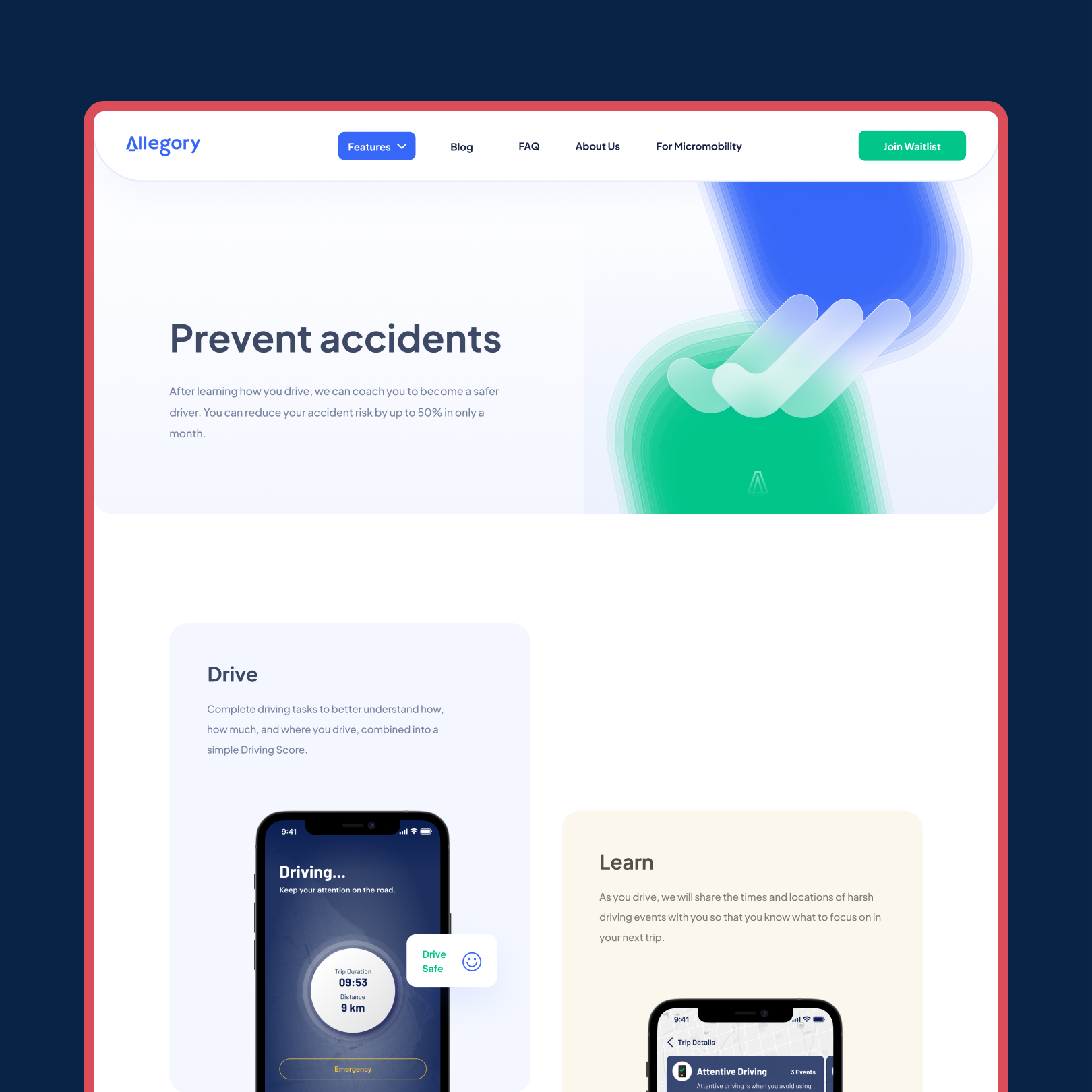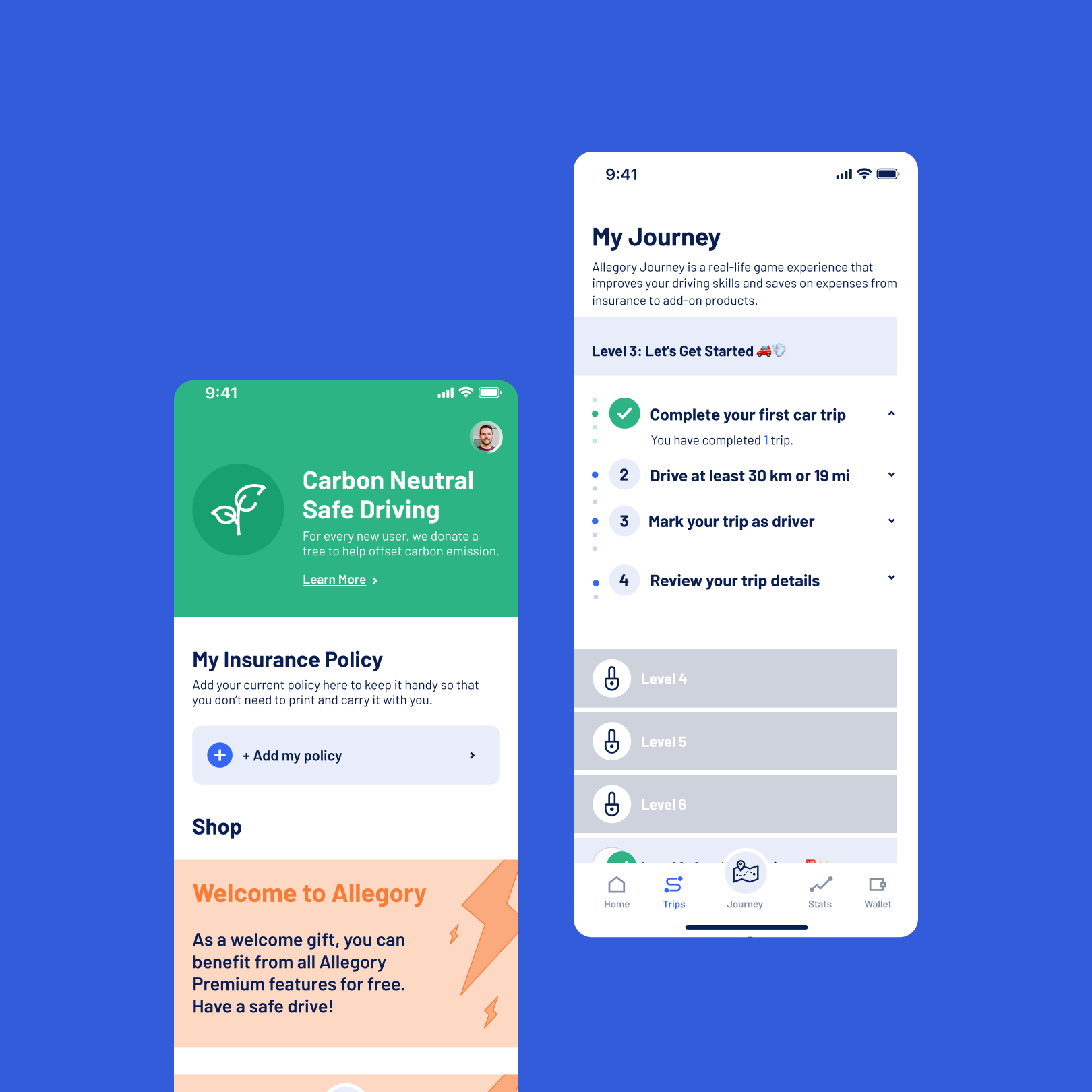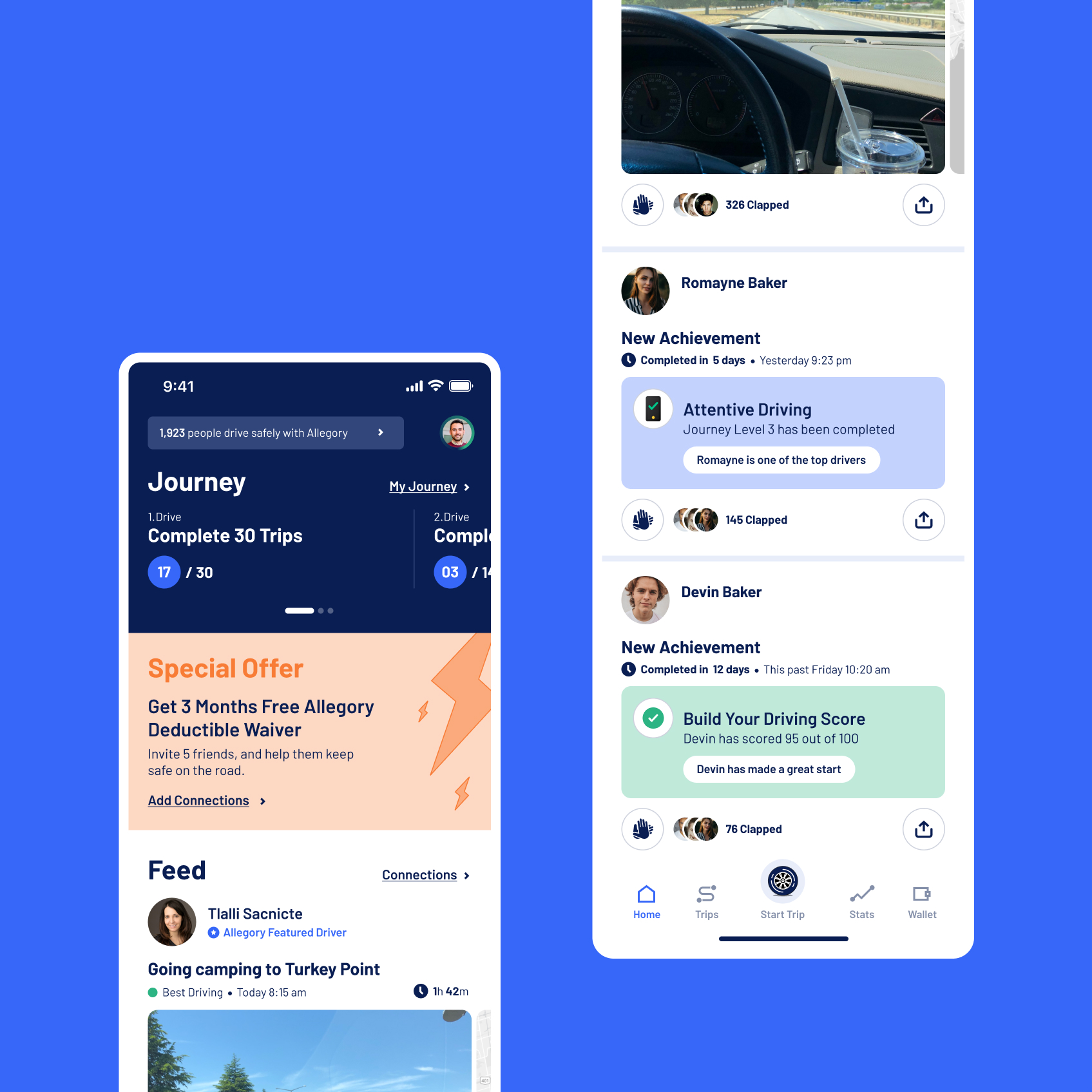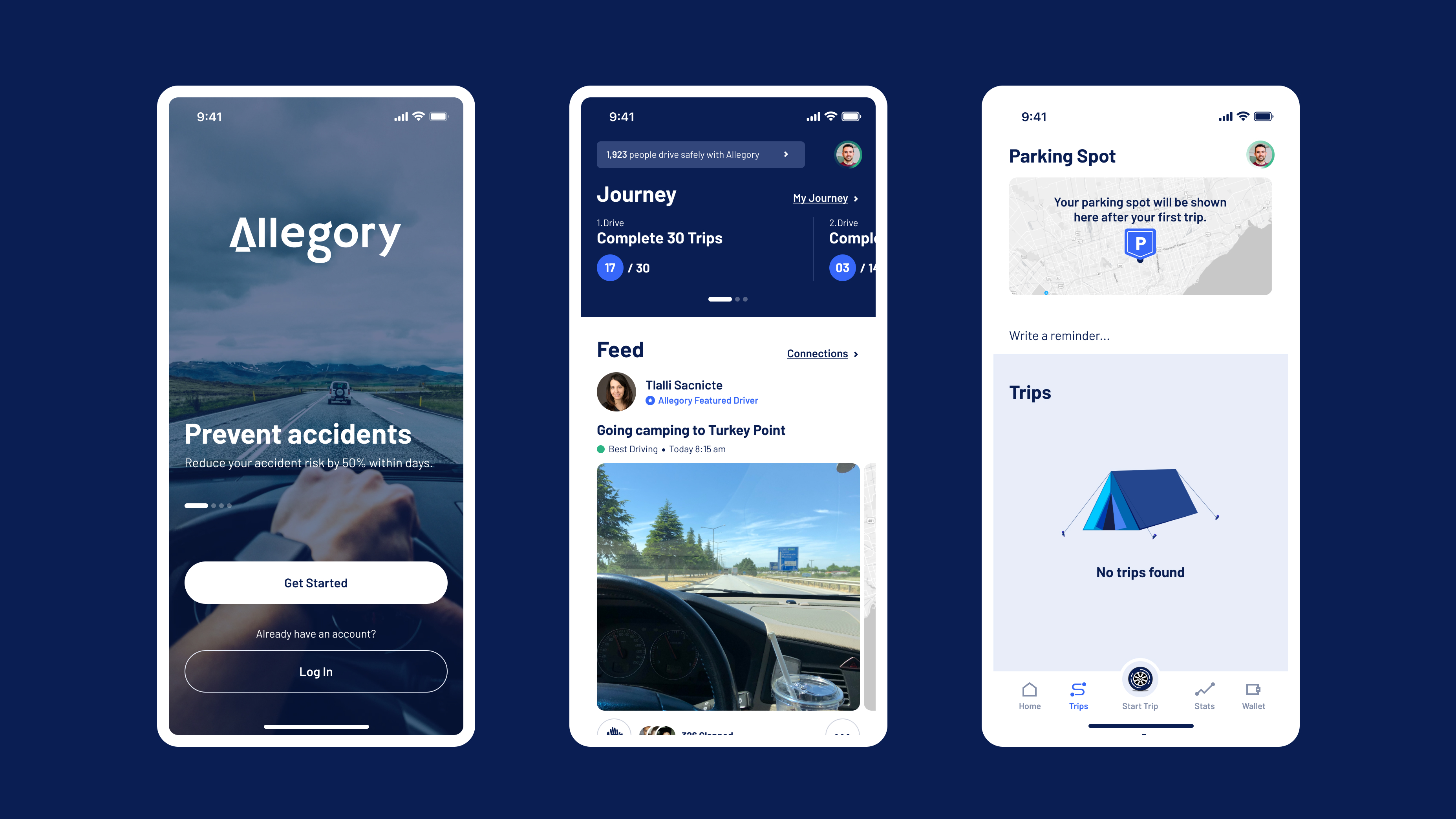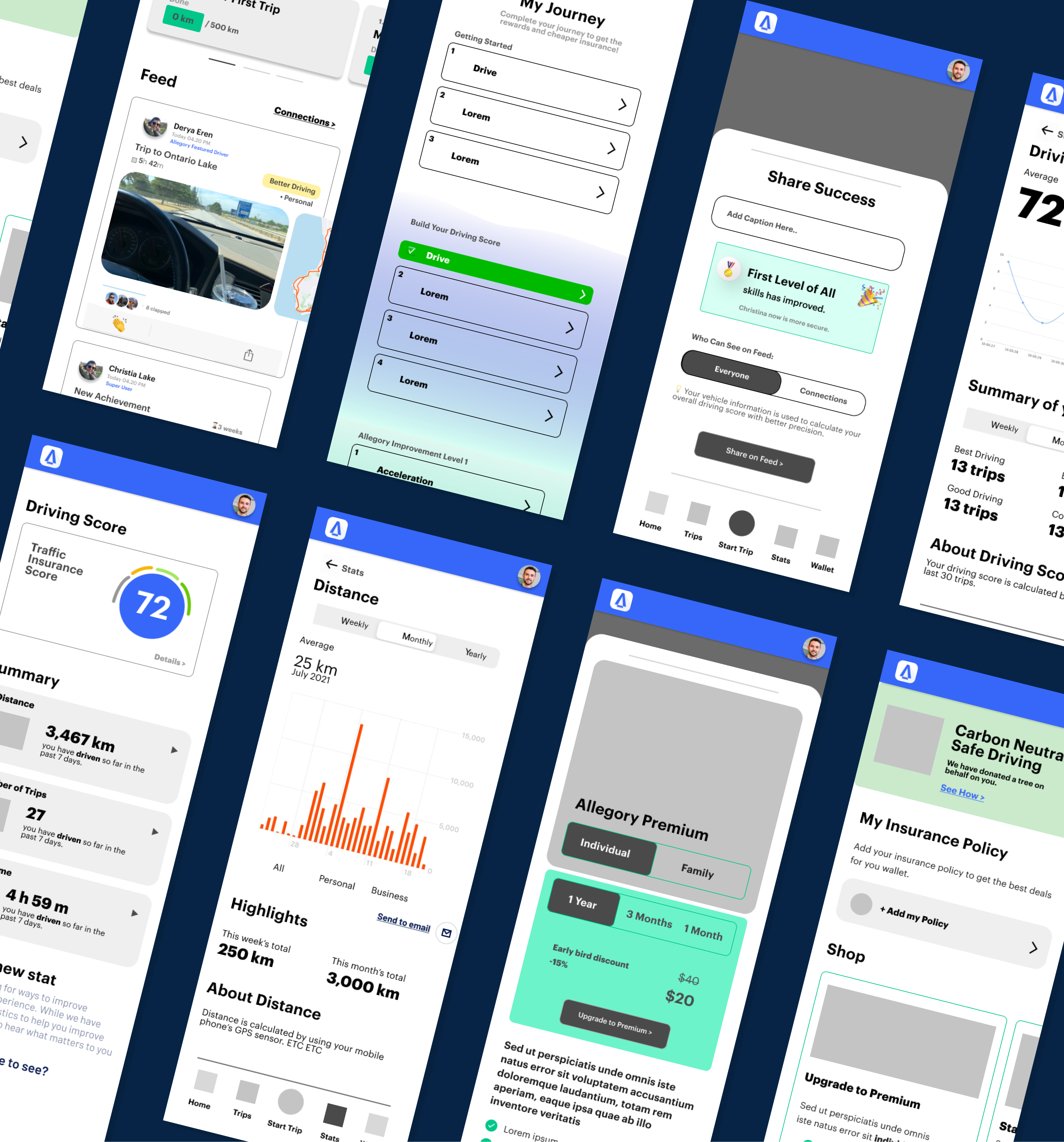Designing a mobile app that allows drivers to easily track their driving behavior analytics, improve their skills, and share their achievements within the Allegory community.