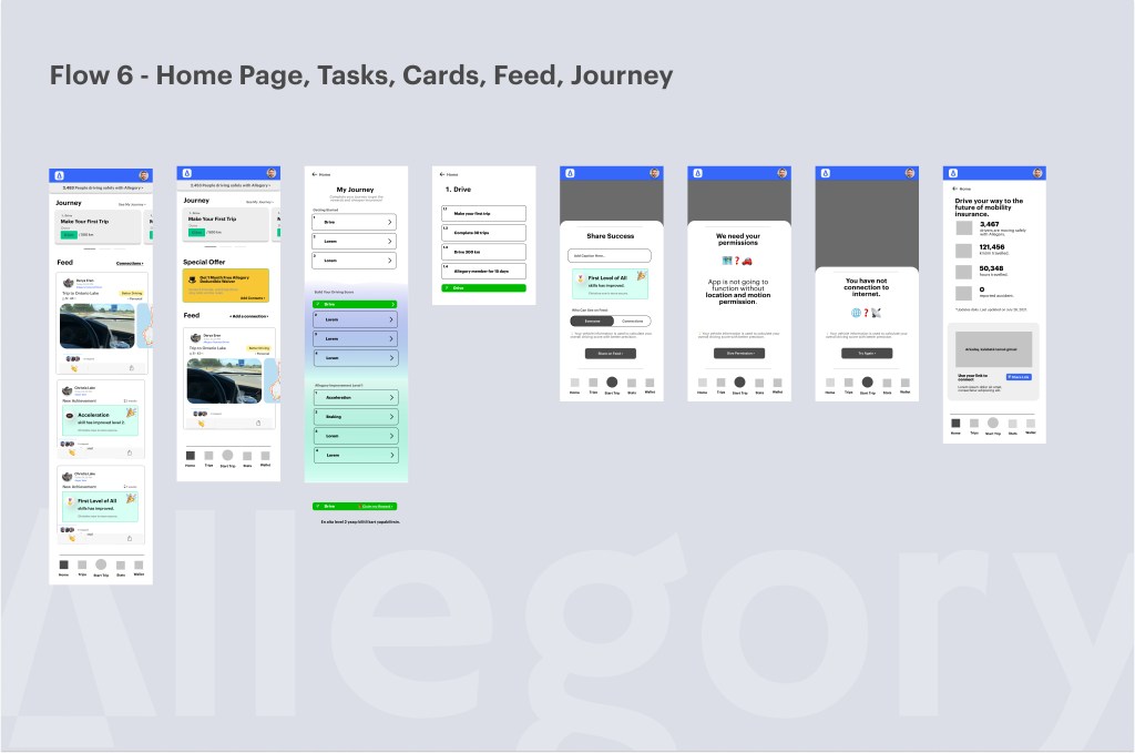 + Allegory Feed: Creating a community for drivers to stay connected with their peers, sharing their successes and driving journeys. This feature also aimed to motivate users to engage with the app, increasing overall usage and interaction.